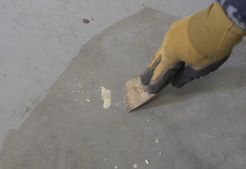 Ako je podloga (u ovom slučaju ljepilo za pločice) predebela ili pretvrda, najprikladnija metoda je frezanje podloge.